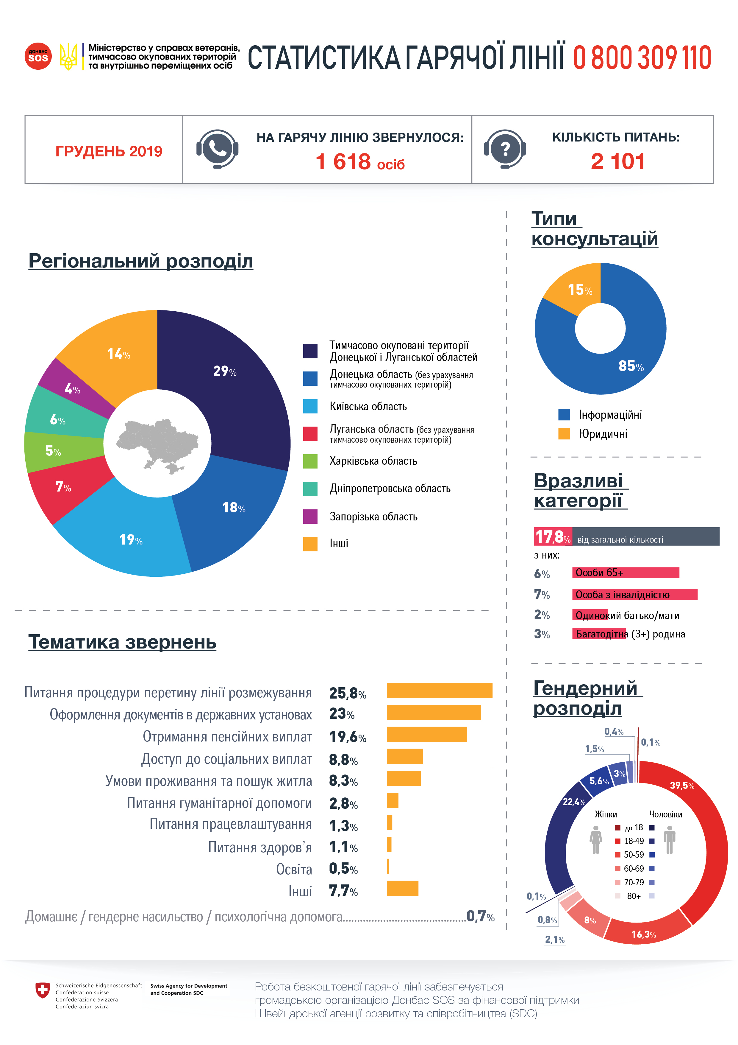 Результаты работы Горячей линии ГО «Донбасс СОС» в  декабре