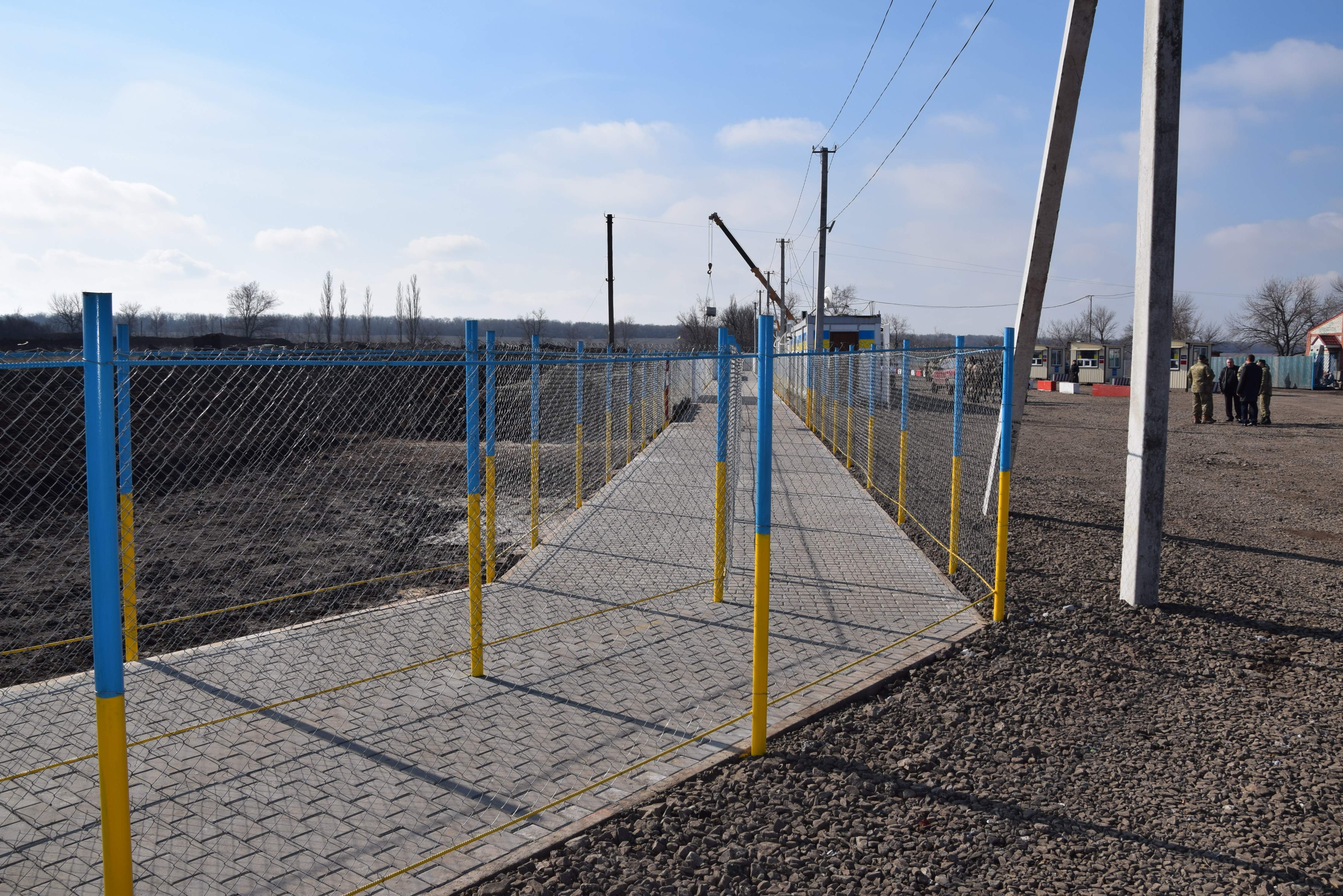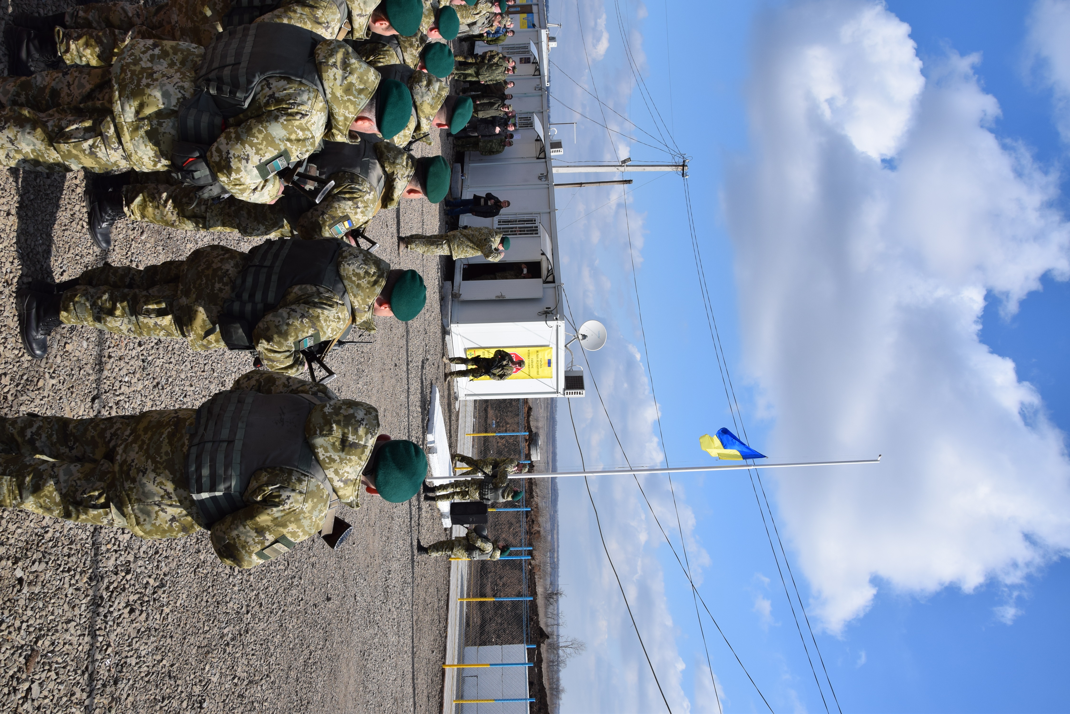 На импровизированном плацу выстроился отряд пограничников в полном обмундировании, у забора в ожидании чего-то торжественного томились служебные собаки. С каждой минутой к КПВВ стекалось все больше журналистов. Было такое ощущение, что еще немного — и количество журналистов сравняется с числом людей в форме. Всем было понятно, что для официальной части открытия ждут одного человека — главу Луганской области Георгия Туку.