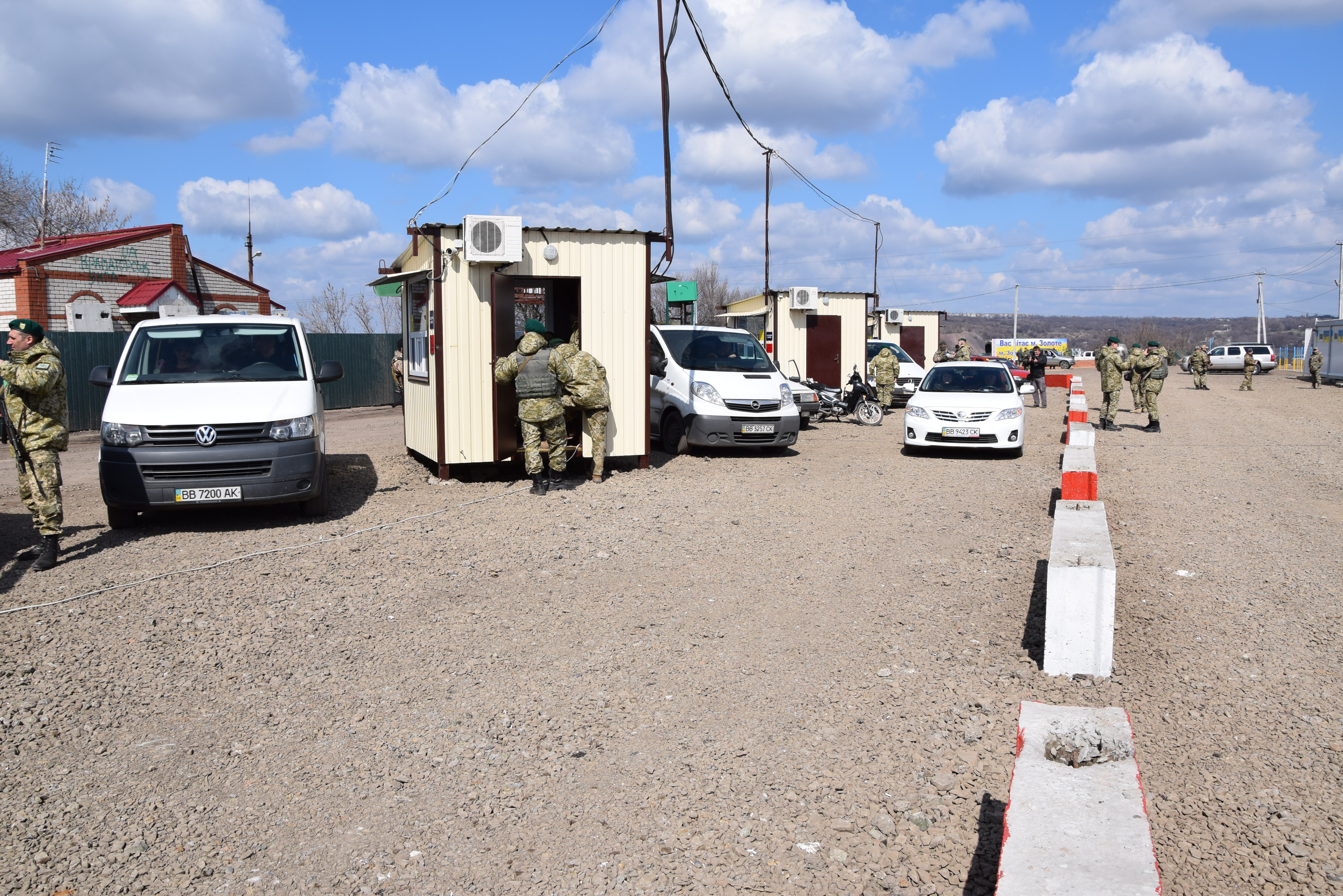 От Лисичанска к КПВВ Золотое ведет разбитая дорога. Через каждые 3-4 км стоит внутренний блокпост. То Национальная гвардия, то ВСУ; и так 5 блокпостов. Местами дорога сужается до 1-й полосы. Страшно представить, что здесь может случиться, когда тут появится поток пусть в половину того, который перетекает ныне на КПВВ Зайцево или Марьинка.