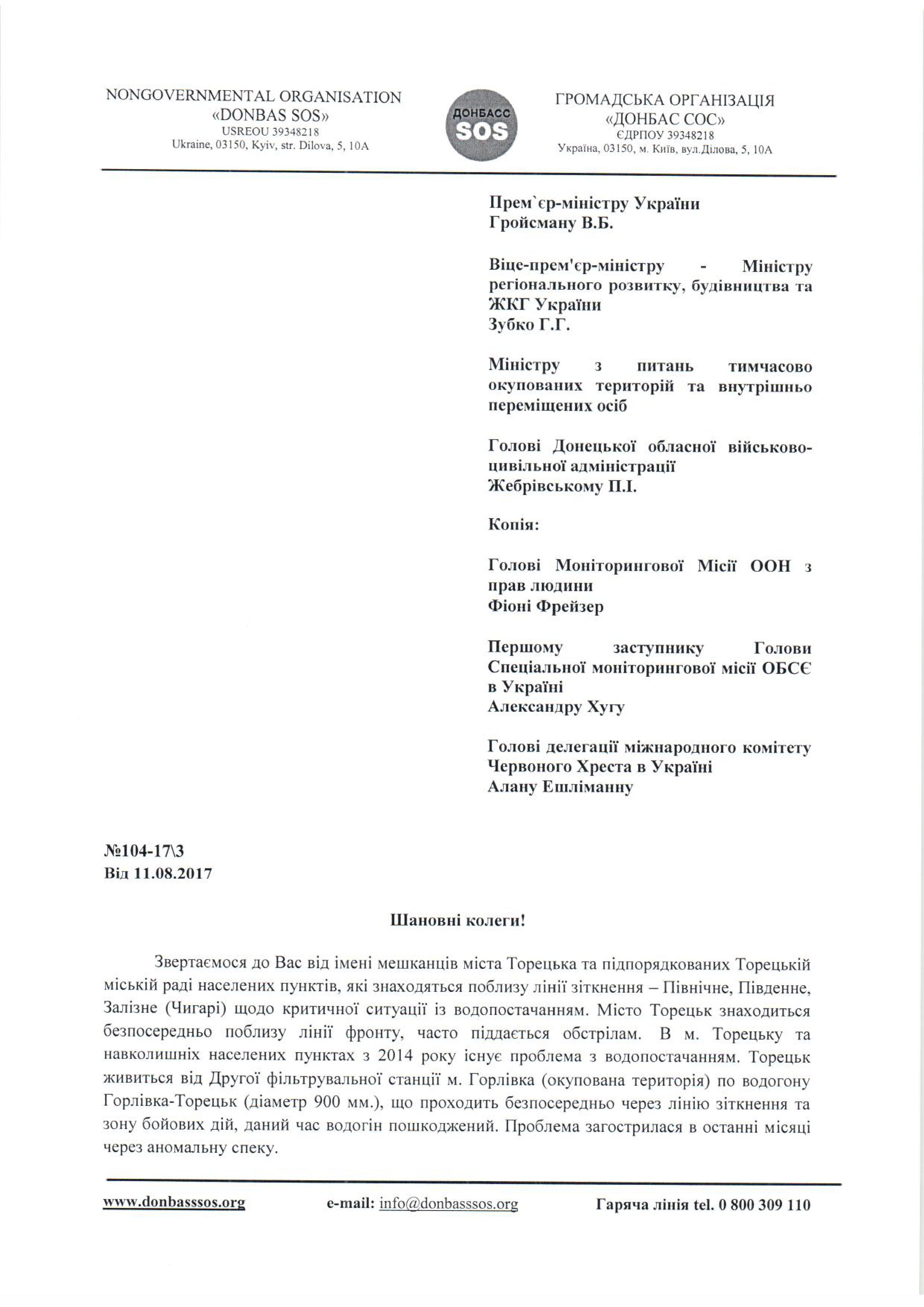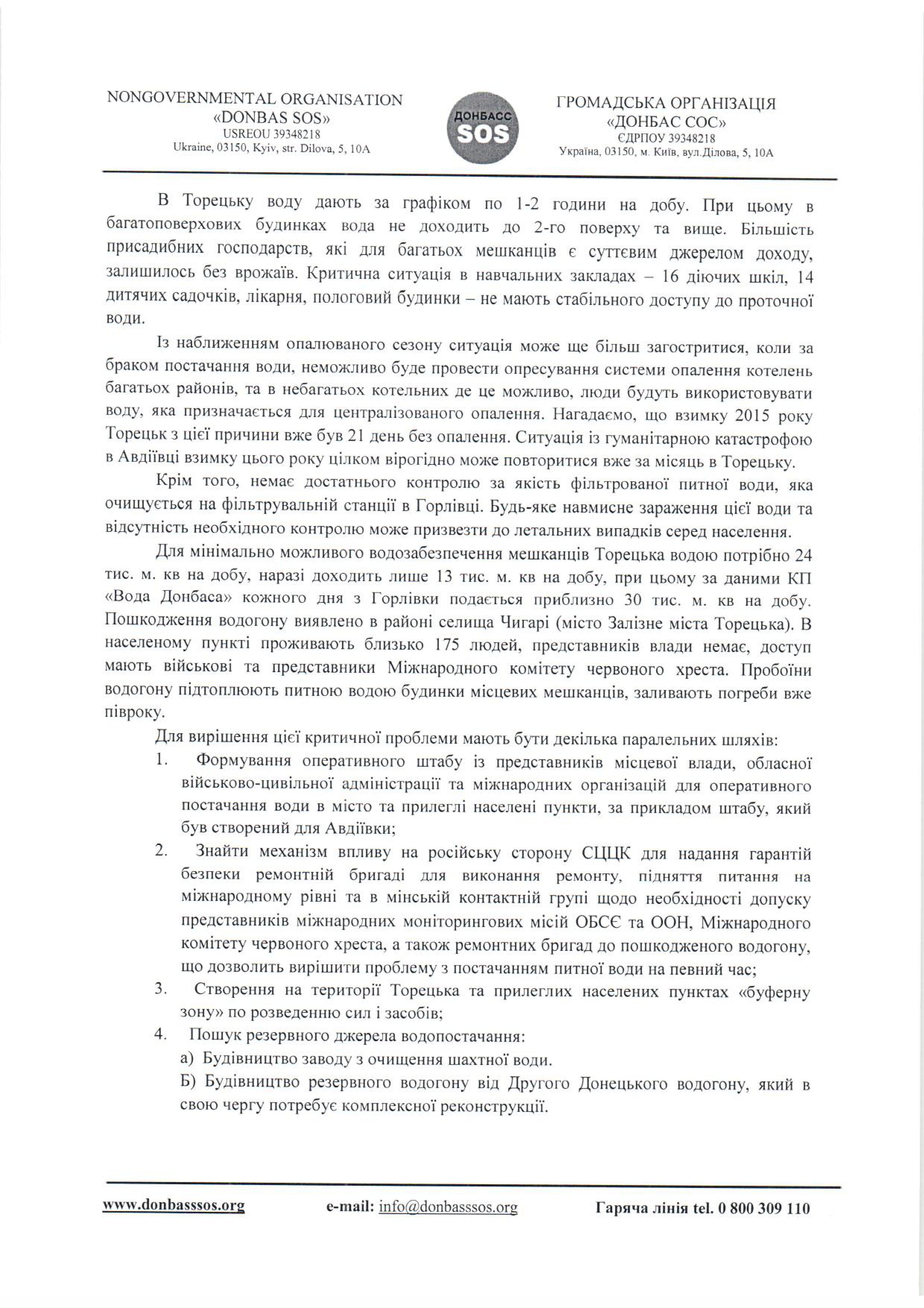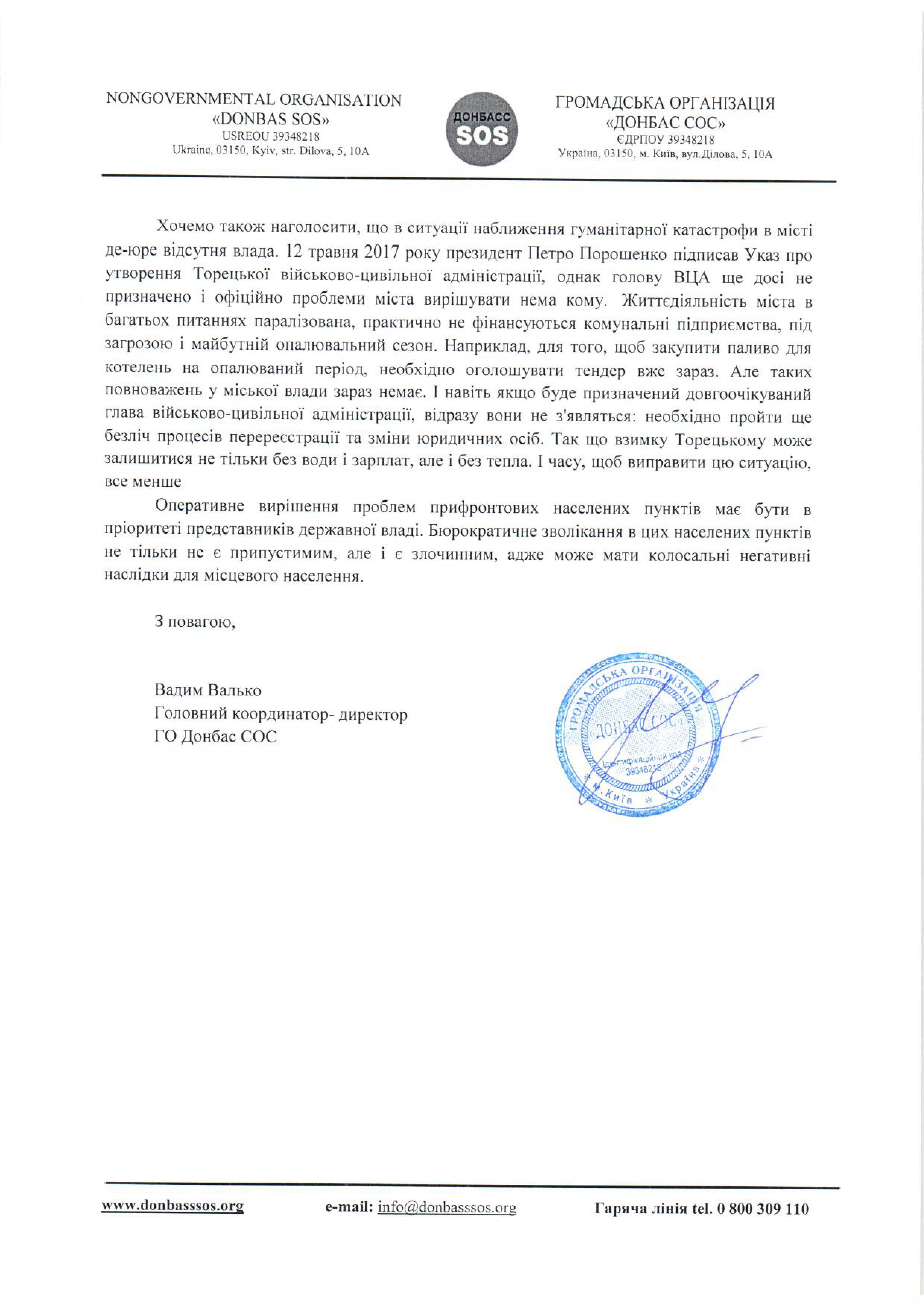 Нами было направлено письмо в государственные органы с детальным описанием сложной ситуации в Торецке.