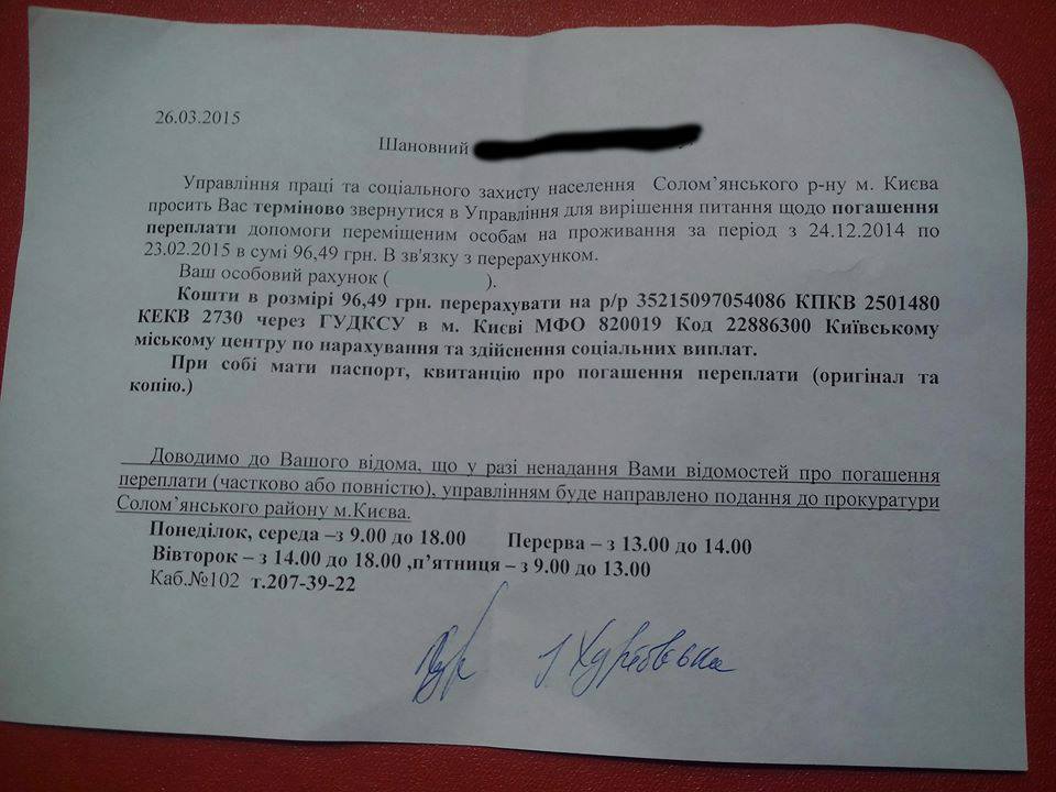 В последнее время участились случаи получения внутренне перемещенными лицами (ВПЛ) документов от Управлений труда и социальной защиты населения (УТСЗН) с разными названиями, но одинакового содержания: