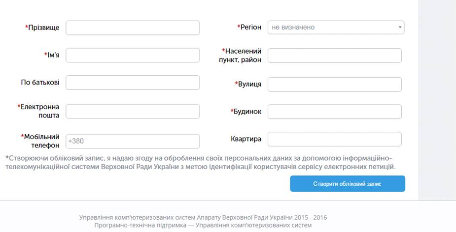 • Внимание: с российских доменов пользователи не смогут ни создавать петиции, ни подписывать их. Согласно рекомендациям Госспецсвязи Украины, использовать электронную почту, которая зарегистрирована в домене << .ru >> запрещено.