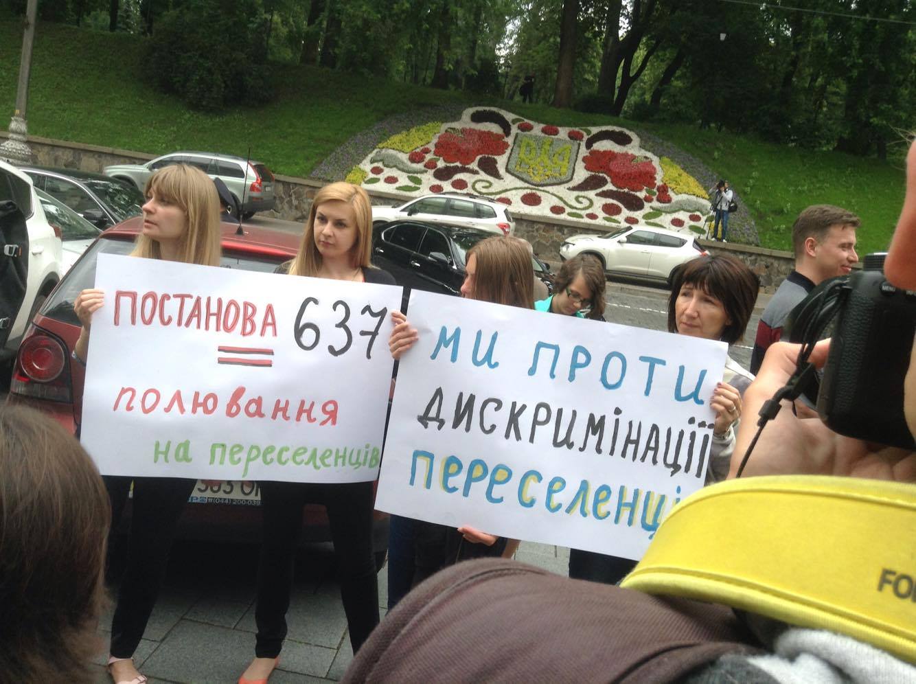 О 14:00 під стінами Кабінету міністрів України відбувся мітинг проти прийнятих вчора змін до Постанови № 637, що фактично на законодавчому рівні закріплює дискримінацію ВПО.