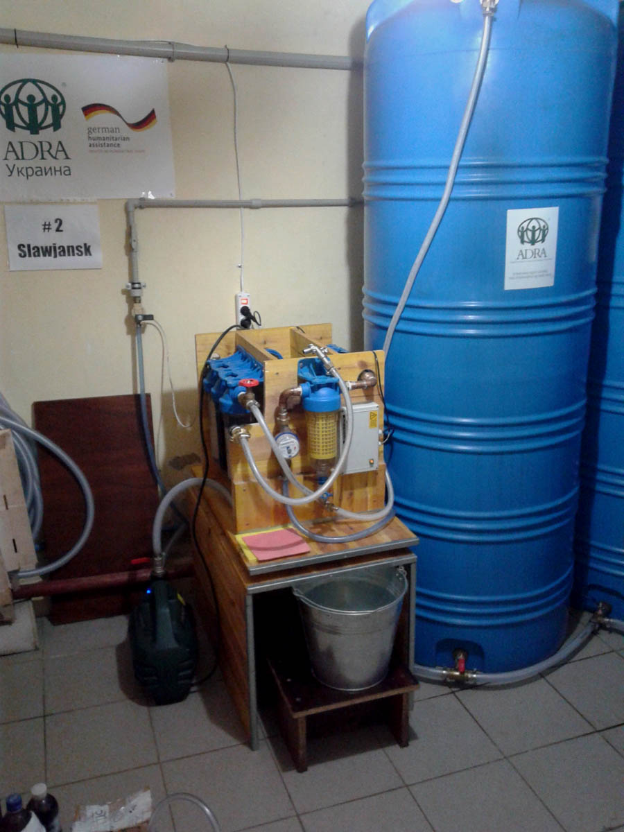 На одно из совещаний в Марьинке Донецкой области руководство города и района пригласило представителей гуманитарных организаций, обратившись к ним с просьбой о помощи. В этом городе в результате боёв была разрушена фильтровальная станция, — у людей есть доступ только к технической воде. Мы выбрали 4 точки, где могли помочь: две школы, поликлиника и водонасосная станция, в которых смонтировали эти фильтровальные системы. В Горняке, Мариуполе, Курахово, Селидово, Красноармейске поставили станции в адвентистских молитвенных домах, — туда за водой и приходили местные жители.