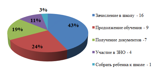 Среди звонков категории «школьное образование» значительная часть касается  вопросов зачисления в школу и продолжение обучения на подконтрольной территории. Здесь хотим напомнить, что «документы об образовании», выданные в  Крыму или неподконтрольной территории Донбасса, не признаются органами образования Украины и не подлежат нострификации либо обмену Министерством образования и науки Украины или органами образования иностранных государств.