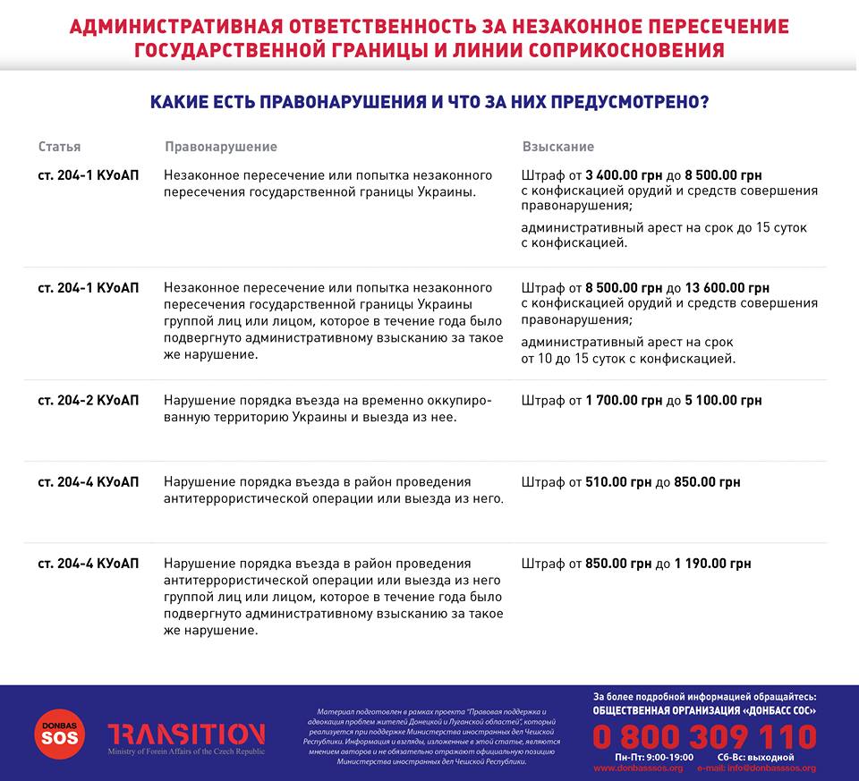 Порядок пересечения линии соприкосновения определен Временным порядком контроля за перемещением лиц через линию соприкосновения в пределах Донецкой и Луганской областей, но определен для въезда/выезда в/из района проведения АТО.