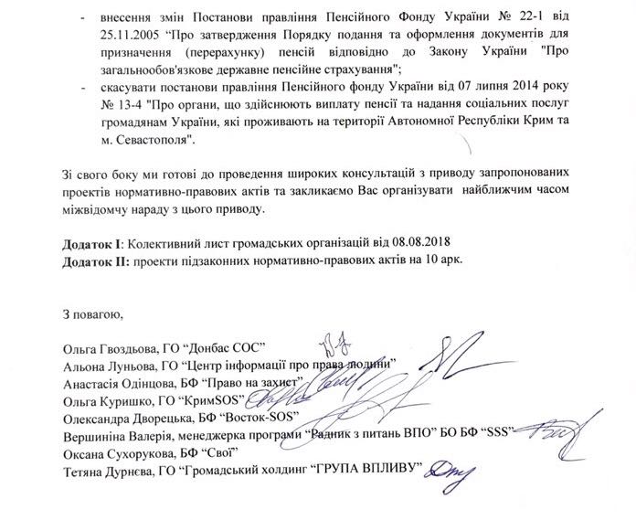 “В Україні є законодавча, виконавча і судова влада. Згідно з рішеннями судів, права переселенців на пенсію законодавчо захищені, а дії Пенсійного фонду України є незаконними. Отже, виконавча влада намагається узурпувати всю владу і нівелює норми Конституції щодо верховенства права, намагаючись підмінювати законодавство України нормами підзаконних нормативних актів. Свої дії КМУ пояснює потребою «збільшення адресності», щоб зберегти бюджет. Однак тільки на сплату судового збору по пенсійним справам з 2016 року ПФУ витратив 9 млн 328 тис. грн”, – заявила Анастасія Одінцова, правовий аналітик БФ “Право на захист”.