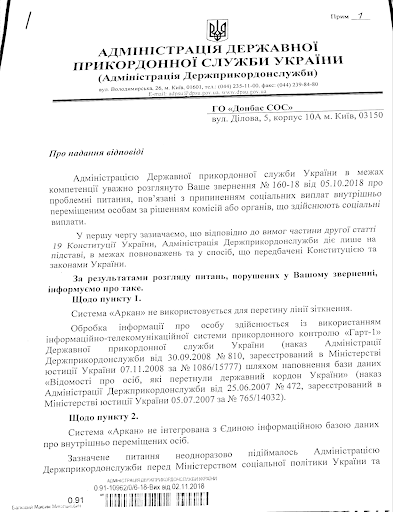 - Система Аркан не интегрирована с Единой информационной базой данных ВПЛ (о чем надо говорить отдельно ибо предложения о ее интеграции поднимаются постоянно). Система Аркан не интегрирована с Реестром разрешений для перемещения лиц в районе АТО (мы сделали такой вывод из формулировки ответа на наш вопрос).