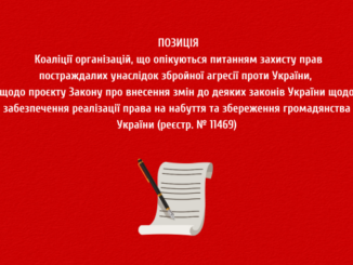 ПОЗИЦІЯ Коаліції організацій, що опікуються питанням захисту прав постраждалих унаслідок збройної агресії проти України, щодо проєкту Закону про внесення змін до деяких законів України щодо забезпечення реалізації права на набуття та збереження громадянства України (реєстр. № 11469)