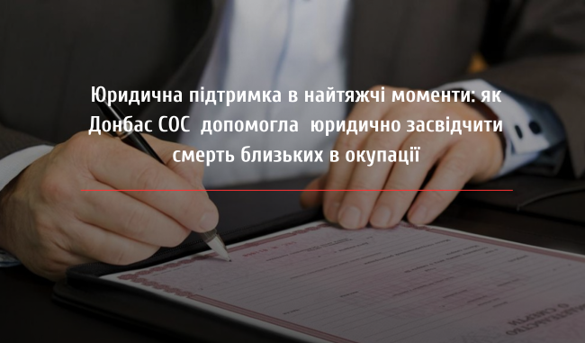 Саме тоді жінка вперше побачила інформацію на сайті “Донбас СОС” про можливість оформити свідоцтво про смерть, навіть якщо людина померла в окупації. І за допомогою юристки вторинної допомоги написала заяву до суду та зібрала потрібні документи