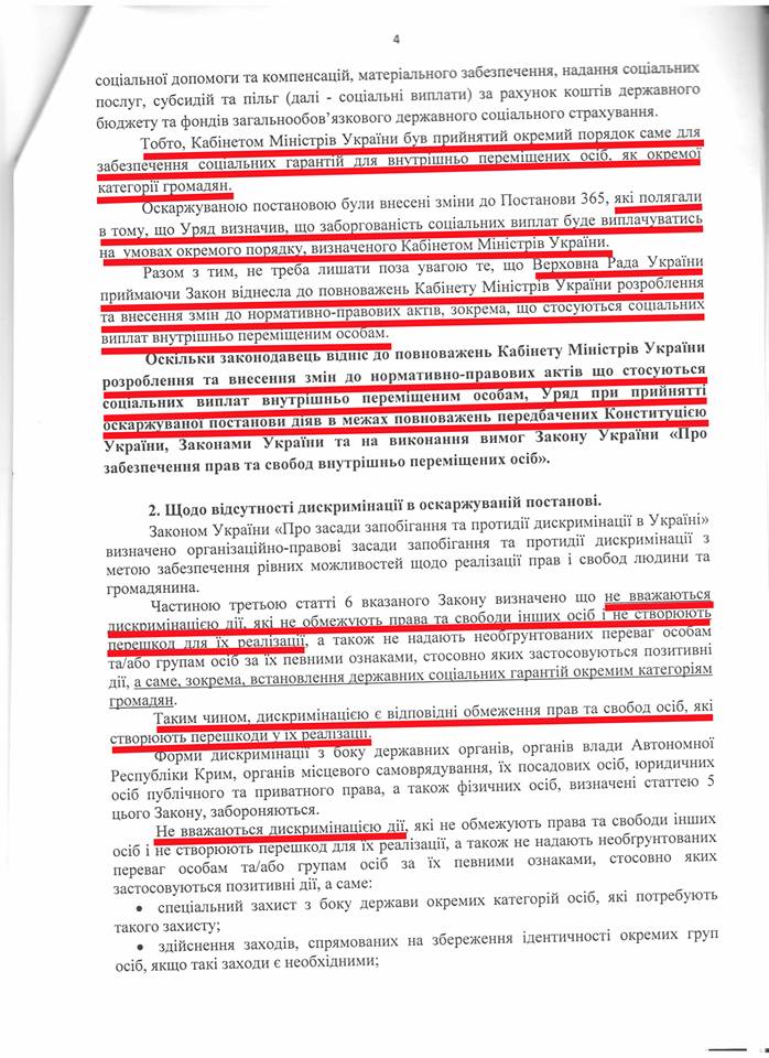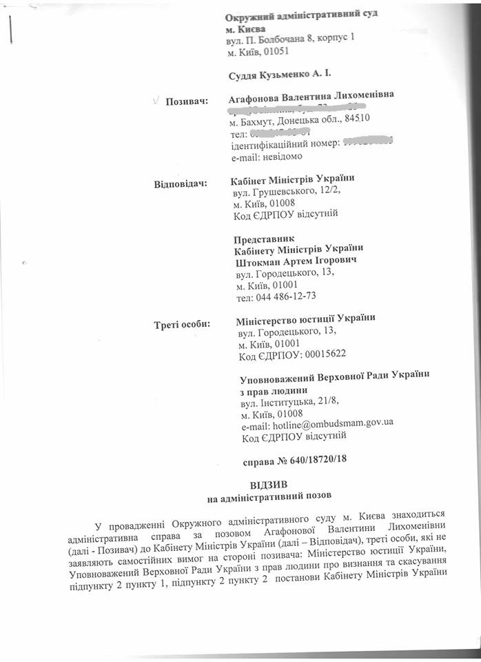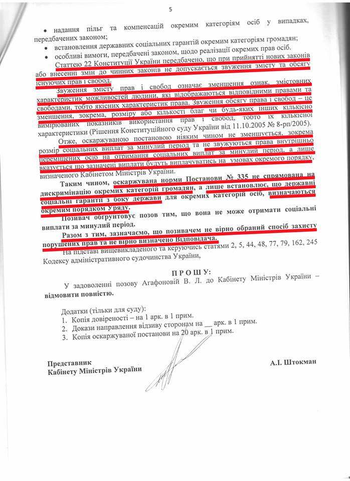 Ниже — отзыв на иск Кабинета Министров Украины. Главные моменты в позиции нашего ответчика выделены красным.