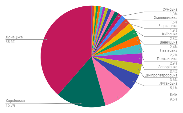 При цьому фінансування розподілено нерівномірно між областями: більшість витрачених коштів припадає на Донецьку область, далі — Харківська, м.Київ, Луганська та Дніпропетровська. Всі інші області отримали менше 3% фінансування.