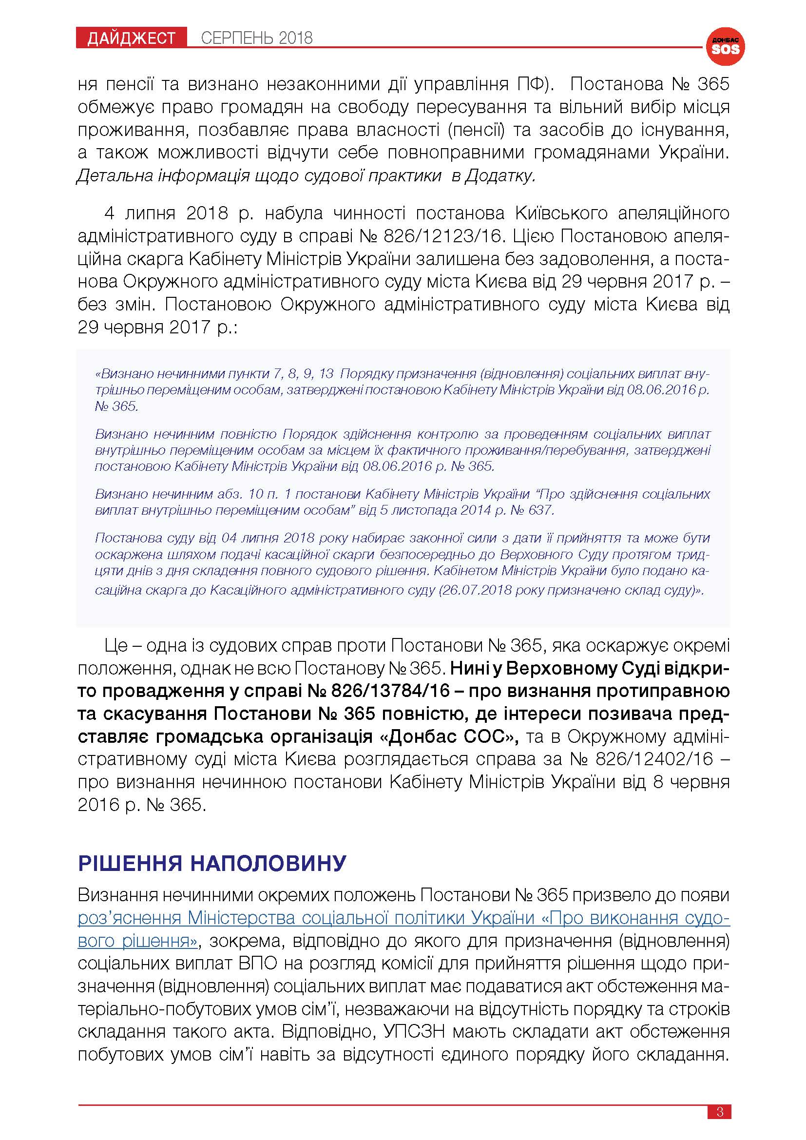 Детально про проблеми, з якими стикаються ВПО через дію Постанови №365, аналіз судової практики та рекомендації читайте в нашому Дайджесті.