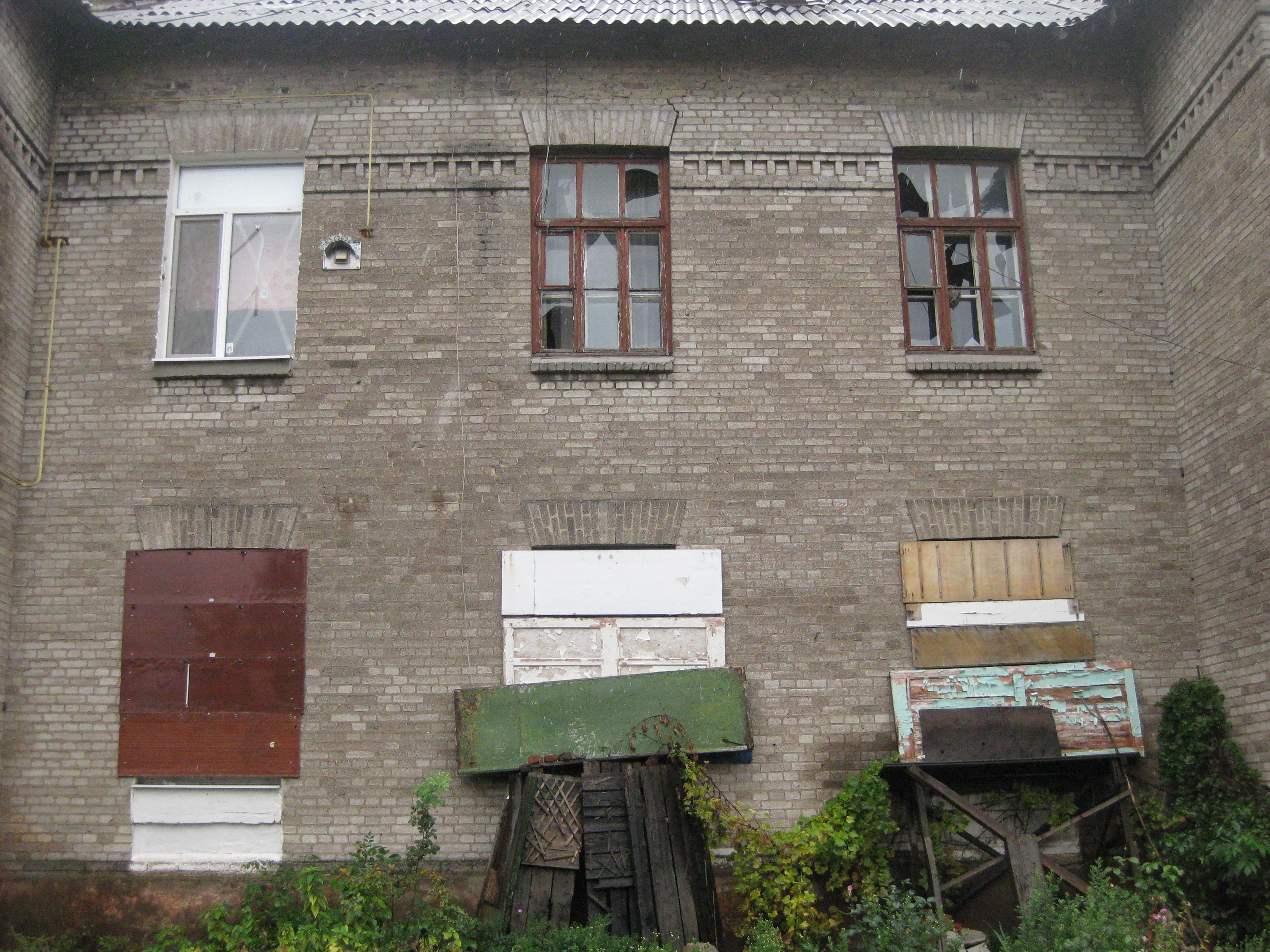 Больше всего не повезло тем, у кого квартиры на последнем этаже. Зажигательные пули и осколки от мин за несколько лет превратили крыши в решето. Во время дождей квартиры затапливает до такой степени, что тазики с тряпками уже не помогают – уровень воды в квартире поднимается до 5 сантиметров и влага между перекрытий просачивается до первого этажа.