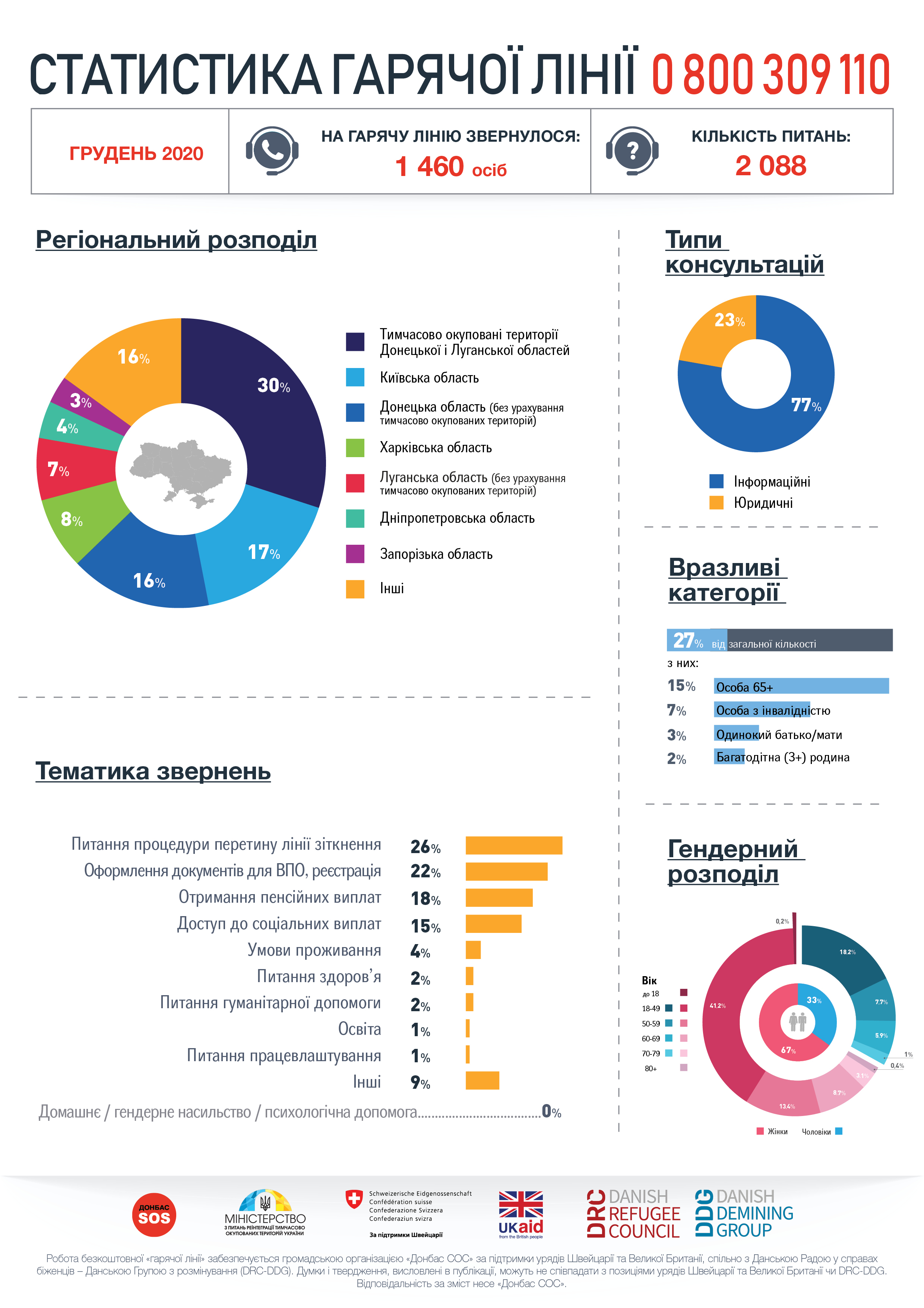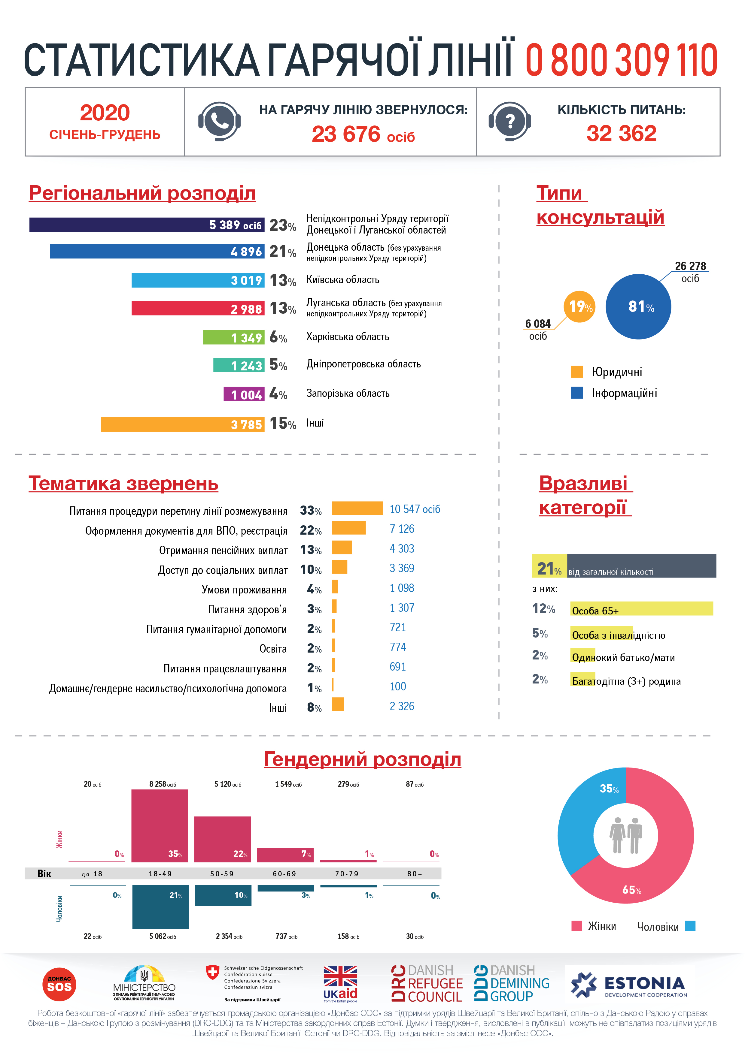 Результати роботи Гарячої лінії ГО «Донбас СОС» у грудні-січні 2020.