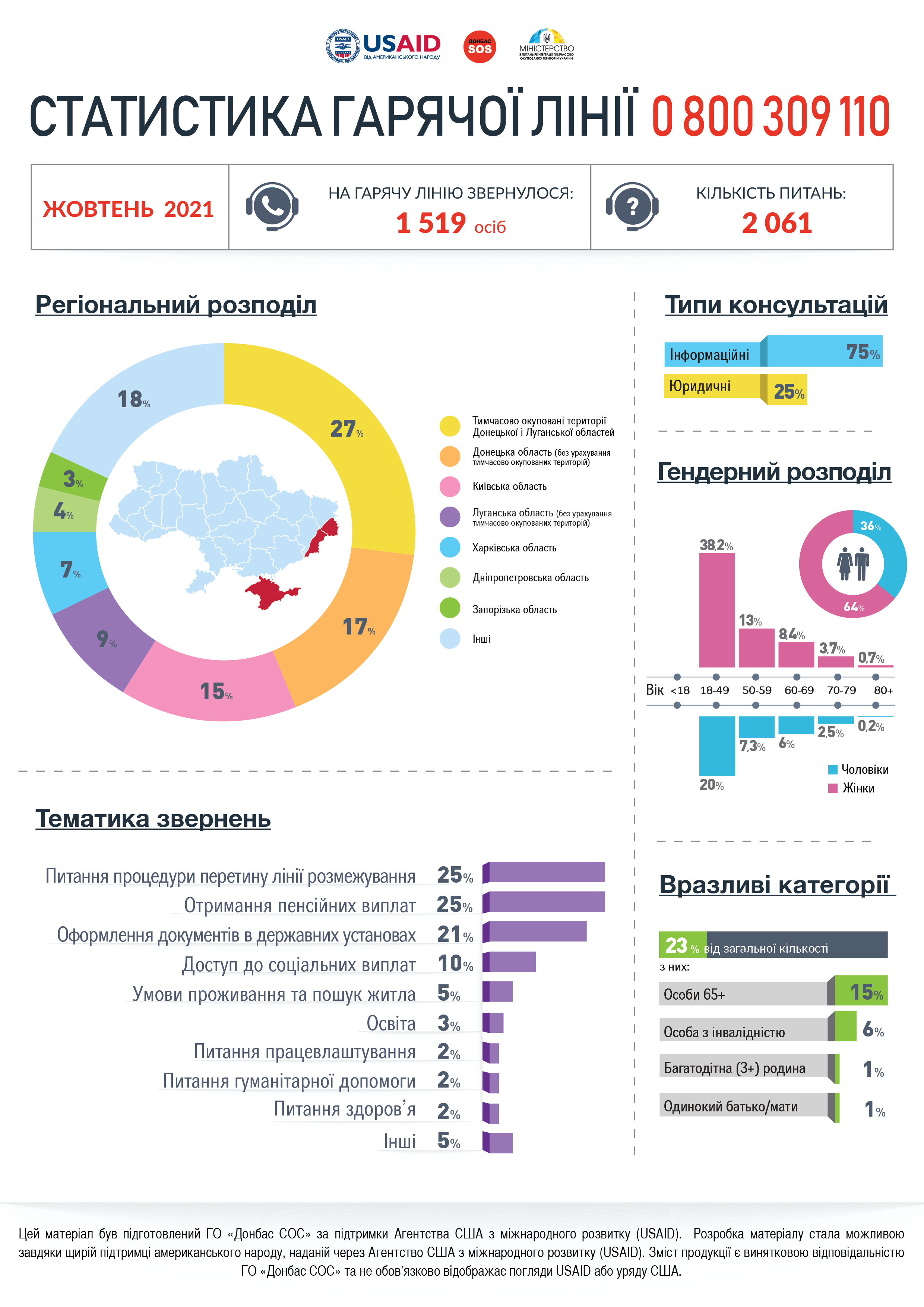 Результати роботи Гарячої лінії ГО «Донбас СОС» у жовтні 2021 року.
