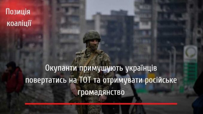 Країна — агресорка примушує українців повертатися на ТОТ та отримувати російське громадянство. У кінці березня окупаційна влада вигадала закон відповідно до якого, власники житла, яке знаходиться на окупованих територіях  мають повернутися та зареєструвати свою нерухомість  у відповідному російському реєстрі.  Якщо цього не буде зроблено, житло буде вилучене окупантами.