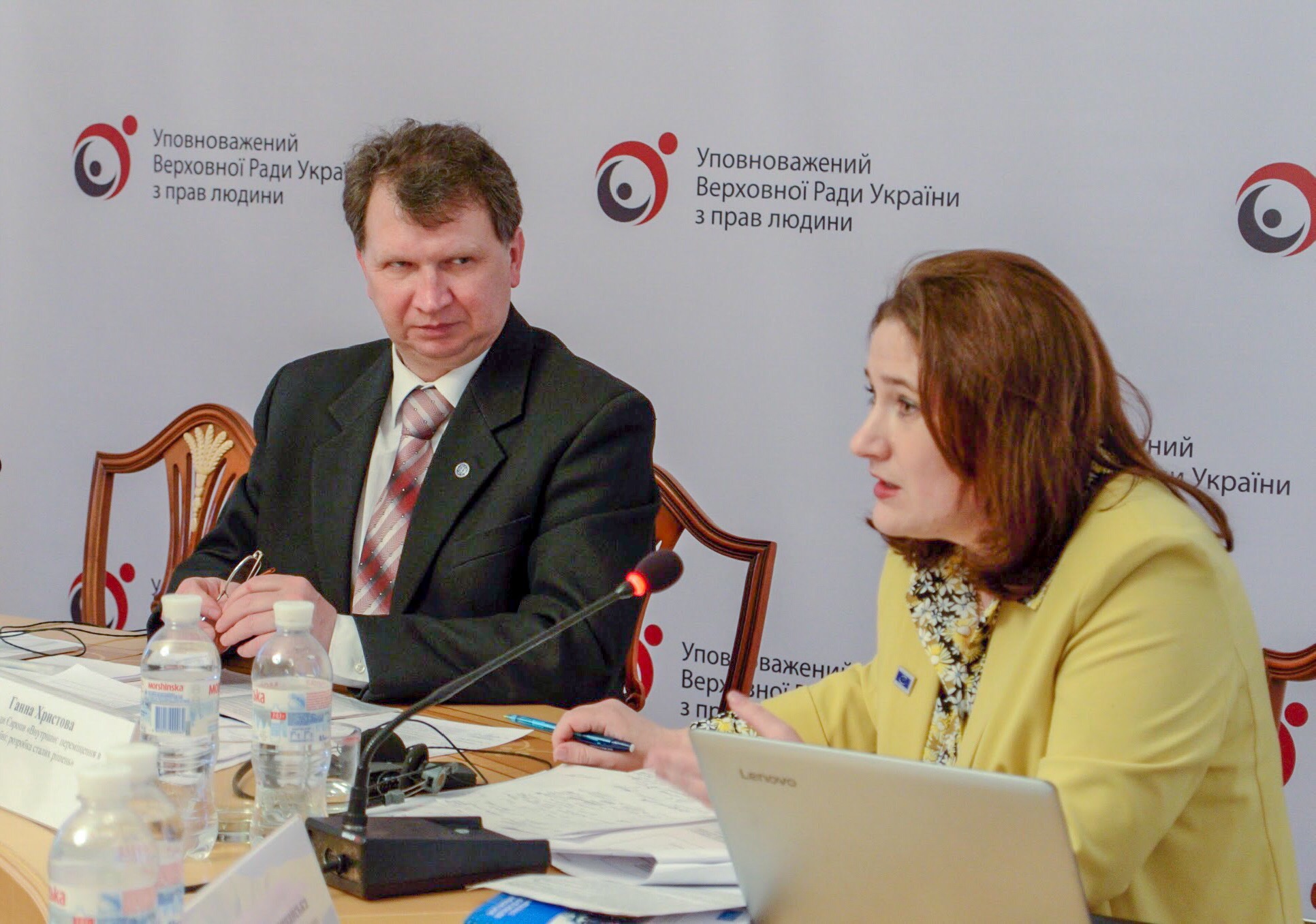 У вітальному слові Представник Уповноваженого Верховної Ради України з прав людини з питань партнерства з інститутами громадянського суспільства Андрій Мамалига наголосив на актуальності проблеми, яка була винесена на обговорення круглого столу. Міжнародні організації неодноразово наголошували на важливості вирішення питань захисту майна постраждалого населення, зокрема підкреслювали необхідність запровадження окремого механізму оцінки збитків, завданих житлу (майну) цивільного населення у ході бойових дій на сході України, з метою надання в подальшому компенсації/реституції за зруйноване\пошкоджене майно, згідно існуючих міжнародних стандартів. Розв’язання цієї проблеми потребує комплексного підходу та створення відповідних механізмів для відновлення порушених майнових прав. Пан Мамалига також повідомив, що Уповноваженим Верховної Ради України з прав людини подано до ВРУ Щорічну доповідь Уповноваженого про дотримання прав і свобод людини і громадянина в Україні за 2018 рік, в якій однією із рекомендацій, внесених Кабміном, є розробка механізму оцінки пошкодженого та зруйнованого майна громадян. Андрій Мамалига закликав до активної дискусії учасників круглого столу.