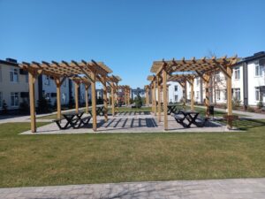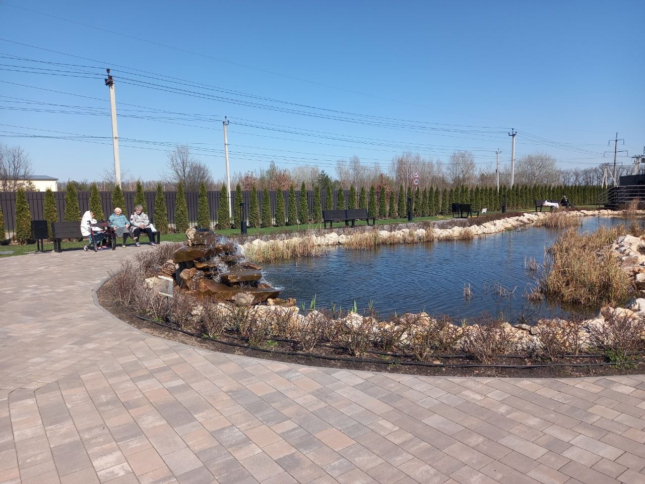 Рівні чисті вулички, 2-поверхові будинки, що розташовані «квадратами», всередині яких обов’язково є спортивний або дитячий майданчик або місце для відпочинку та спілкування. Озеро, чудовий ландшафтний дизайн. Окремо — вулиця одноповерхових дуплексів для великих родин від 9 людей. Дитячий садочок, початкова школа, спортивний комплекс, літній басейн, лікарня, де приймає американський сімейний лікар, є гінеколог, стоматолог та педіатр. Цілий майданчик великих генераторів, завдяки яким мешканці містечка не замерзли під час відключення електрики. Позаду будується велика нова школа на тисячу дітей, яка задумана як елітна: за задумом пана Хансена, викладання буде англійською, учні навчатимуться у сучасних комфортних умовах.