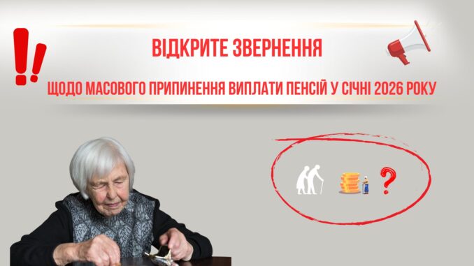 ВІДКРИТЕ ЗВЕРНЕННЯ щодо масового припинення виплати пенсій у січні 2026 року