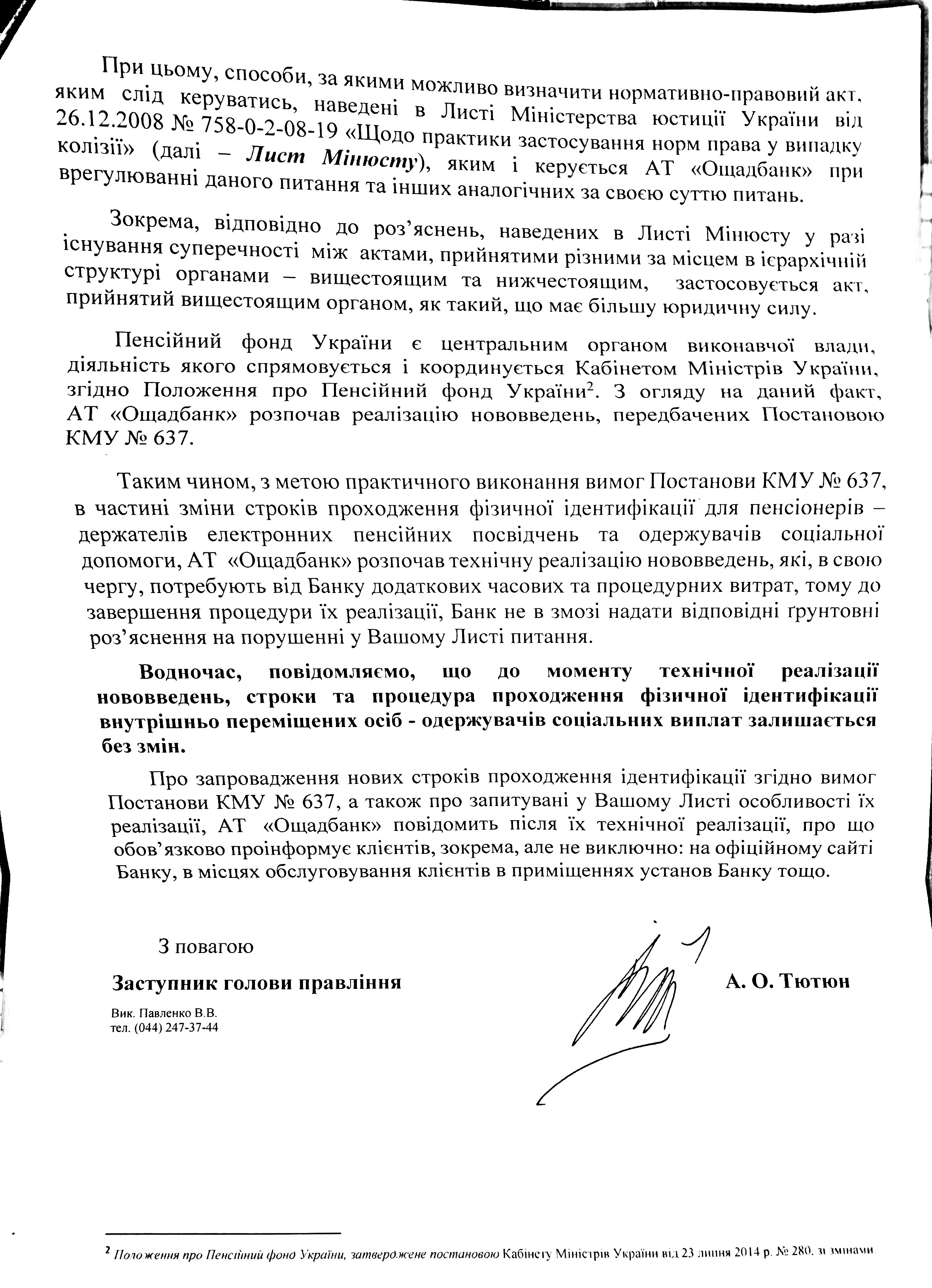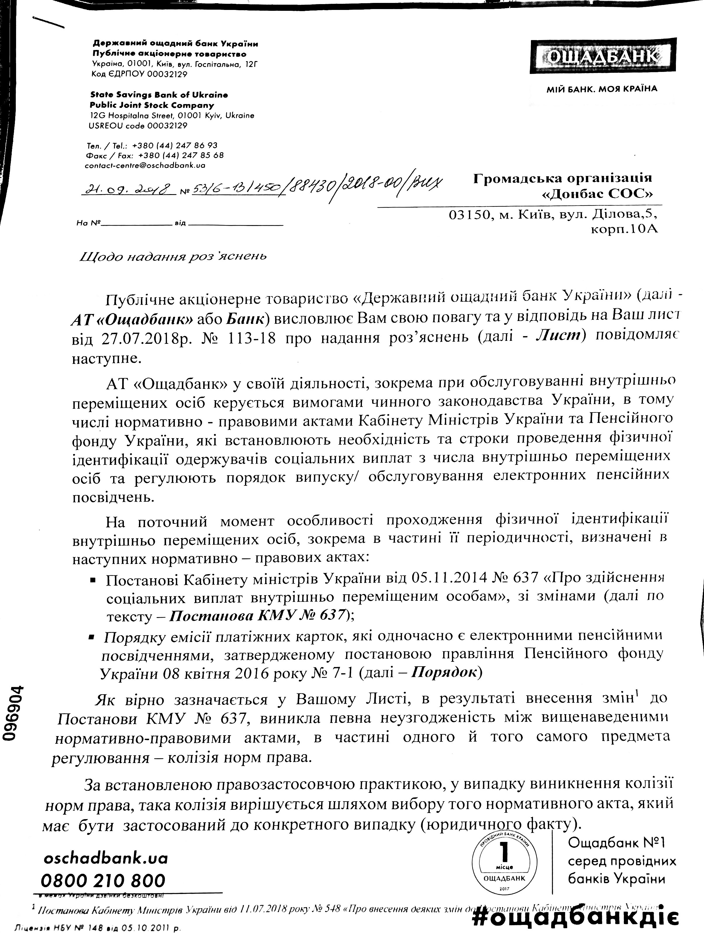 НО! Ощадбанк информирует, что изменение сроков прохождения физической идентификации “требует от банка дополнительных временных и процедурных расходов”, в связи с чем “до момента технической реализации нововведений, сроки и процедура прохождения физической идентификации внутренне перемещенных лиц — получателей социальных выплат остается БЕЗ ИЗМЕНЕНИЙ”.