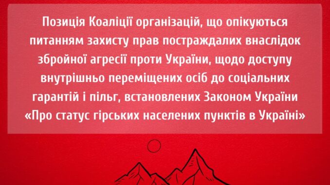 ВПО, які мешкають у гірських населених пунктах, повинні мати рівний доступ до соціальних гарантій, як і інші мешканці цих територій.