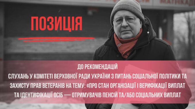 Коаліція правозахисних організацій надала пропозиції профільному Комітету Верховної Ради щодо врегулювання кризи з виплатами, через яку в січні 2026 року сотні тисяч людей раптово залишилися без пенсій. Проблема торкнулася найбільш вразливих категорій: мешканців ТОТ, людей за кордоном, дітей загиблих захисників та самих військових пенсіонерів з-поміж ВПО, які мають інвалідність. Припинення виплат відбулося без адресного попередження, часто через технічні збої порталу ПФУ при проходженні відеоідентифікації або неправомірні вимоги довідок про неодержання коштів від рф, що змушує літніх людей годинами стояти в чергах на морозі. Правозахисники вимагають негайно поновити виплати в автоматичному режимі, запровадити систему SMS-інформування та документально підтверджувати успішну ідентифікацію, щоб уникнути повторних блокувань через помилки системи.